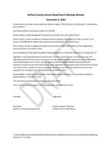Buffalo County Annual Weed Board Meeting Minutes 12 5 23